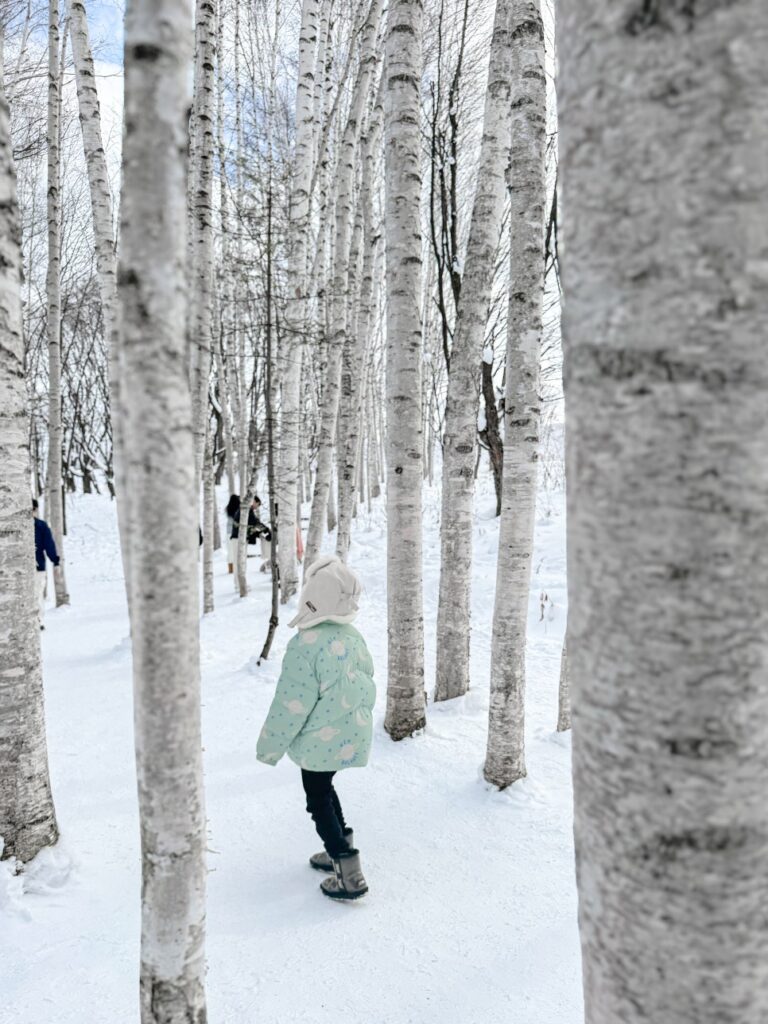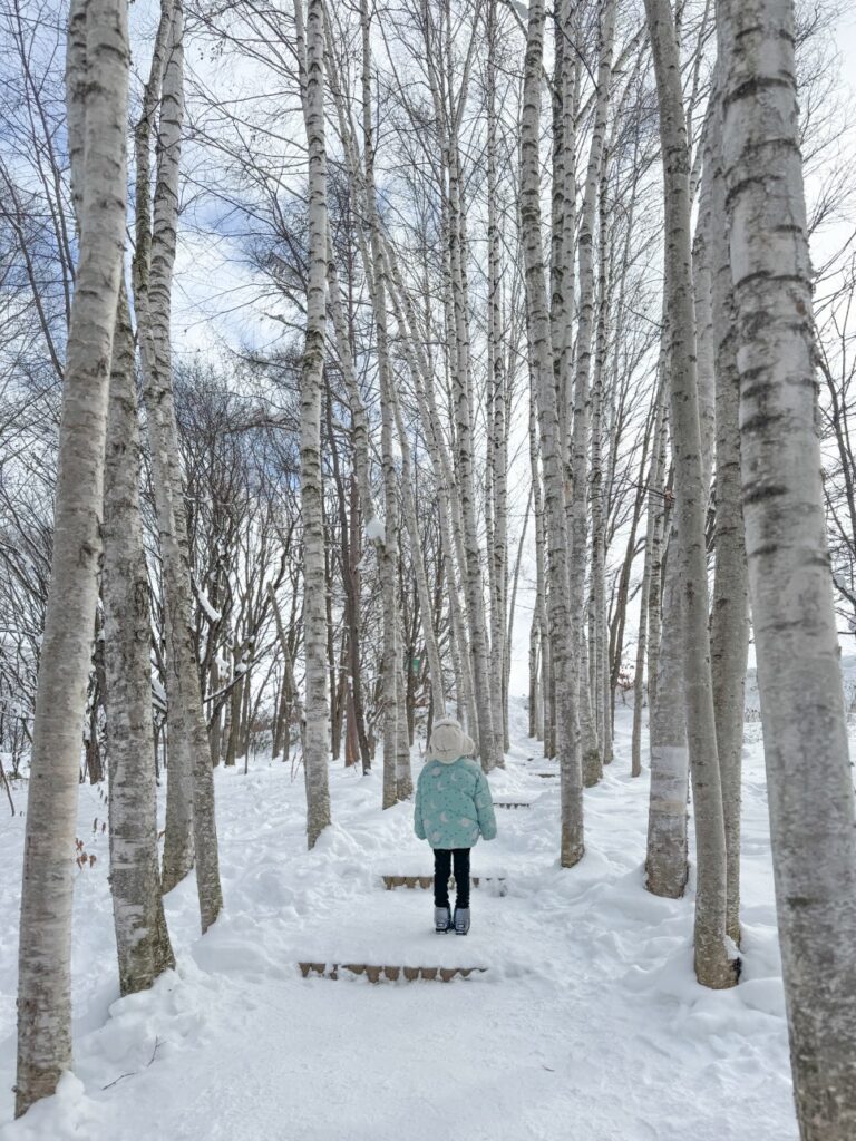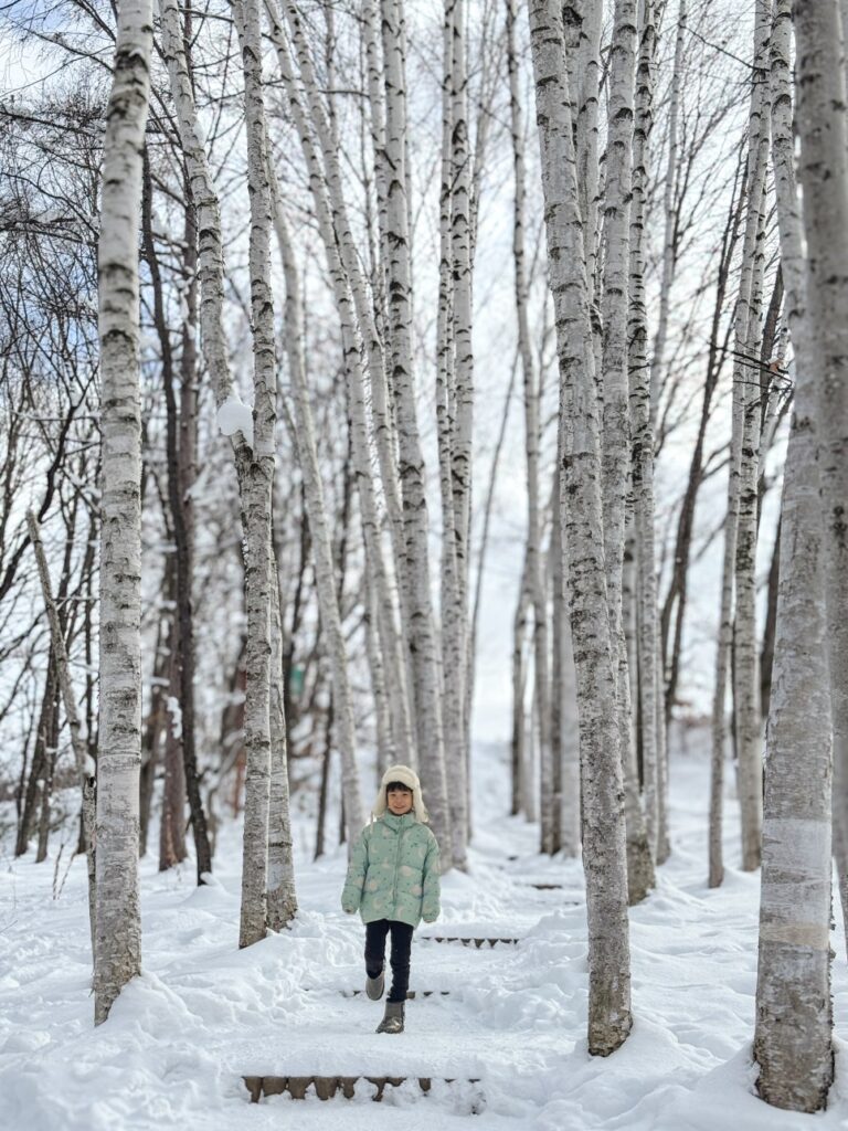 That concern dissolved within minutes. Takushinkan is a gallery, yes — but behind it lies an expansive birch forest blanketed in snow where my child ran, laughed, and played without stopping. The gallery warms you up. The forest sets you free.