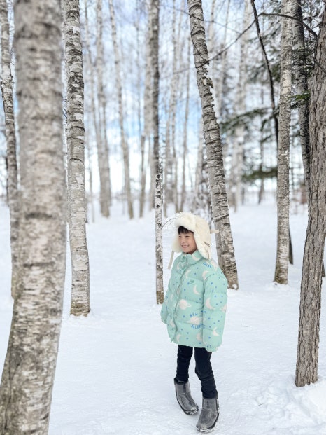 For children: Deep soft snow between the trees becomes an instant playground. My child wove between trunks, fell over laughing, and didn’t want to leave. The forest does the parenting for you.
