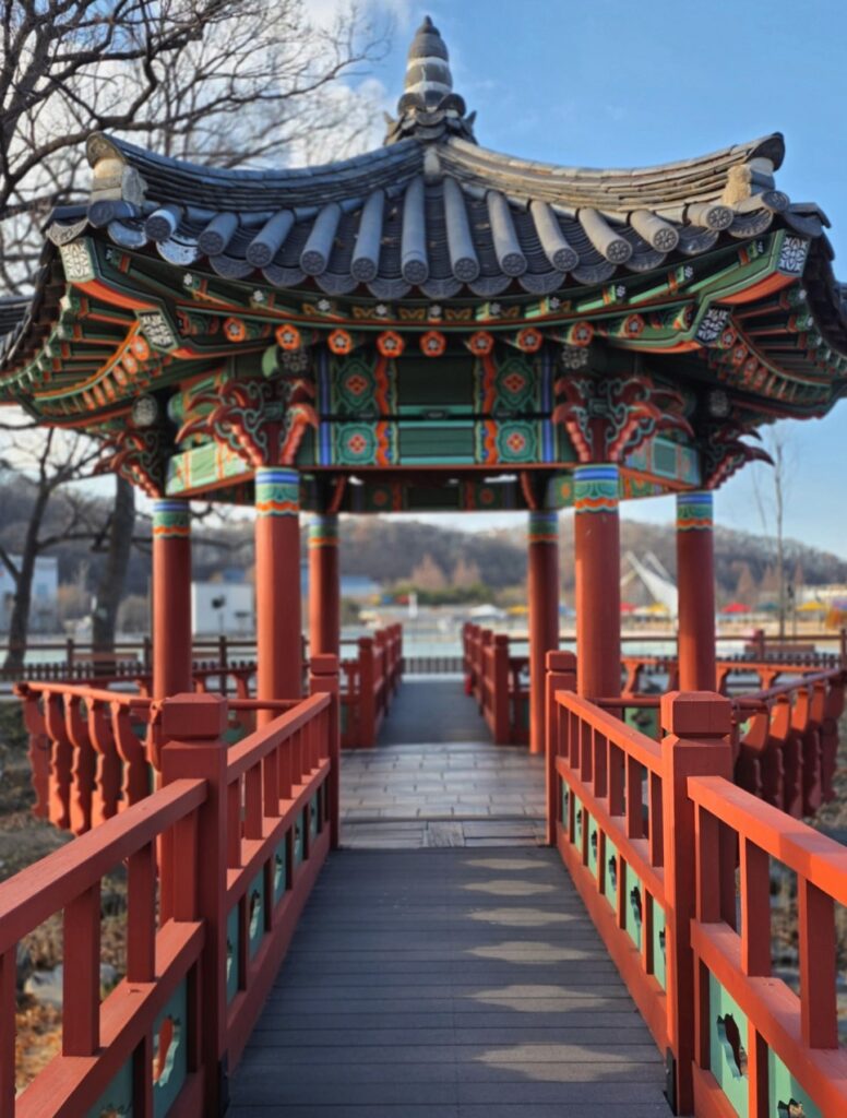 The weeping willows swaying in the wind beside the pond — just like the old Korean folk song about Cheonan Samgeori. Sitting in the pavilion above the water, the city noise disappears completely. It feels genuinely restorative.