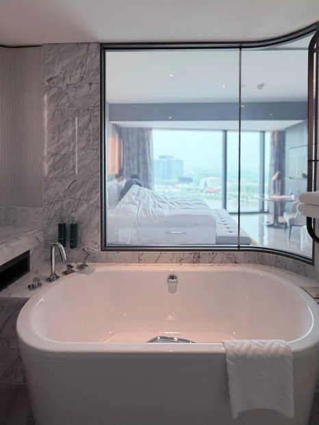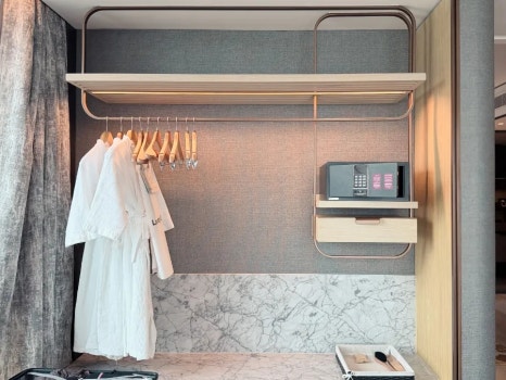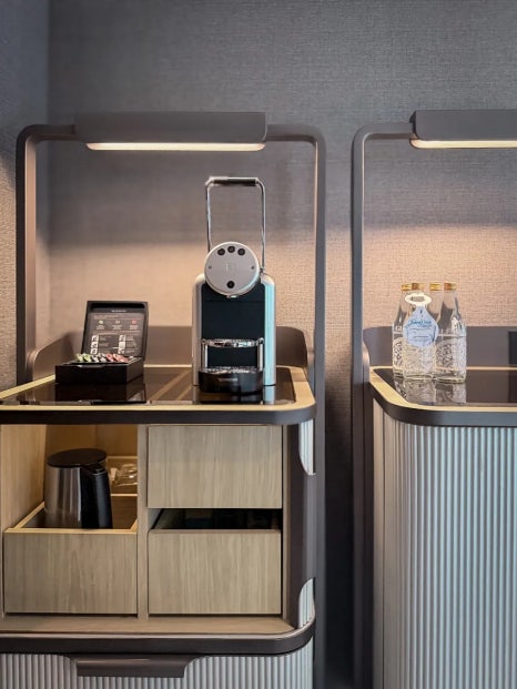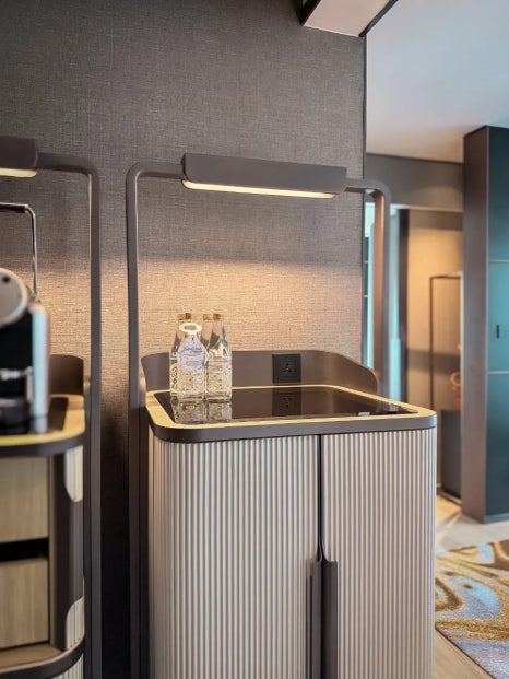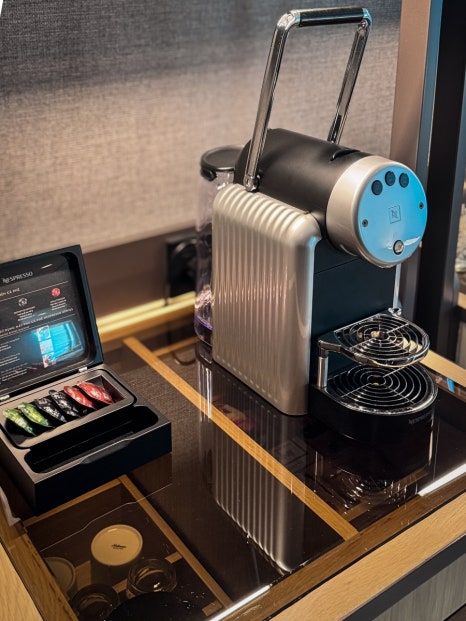 The mini bar, capsule coffee machine, and ample storage were all brand new and spotless — exactly what you’d expect from a newly opened five-star hotel.