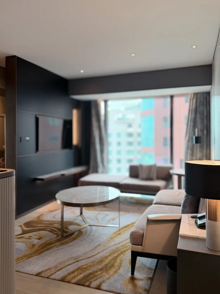The moment we walked into the Hilton Saigon, soaring ceilings and floor-to-ceiling windows created an immediate sense of openness and calm. The design blends modern sophistication with warm Vietnamese touches — elegant without feeling cold.