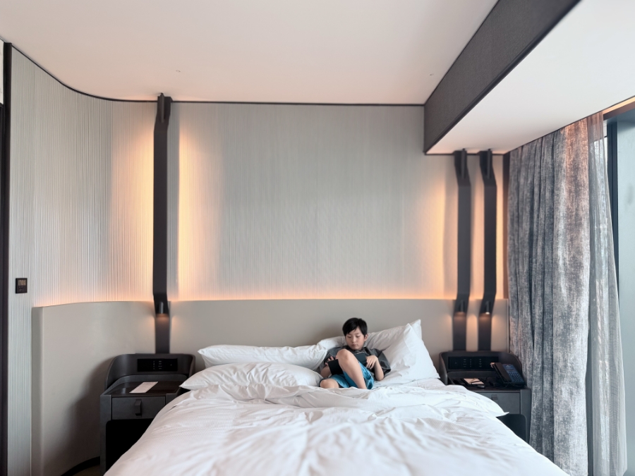 The king bed was wide enough for all three of us — plush, crisp linens that made jet lag feel like a distant memory.