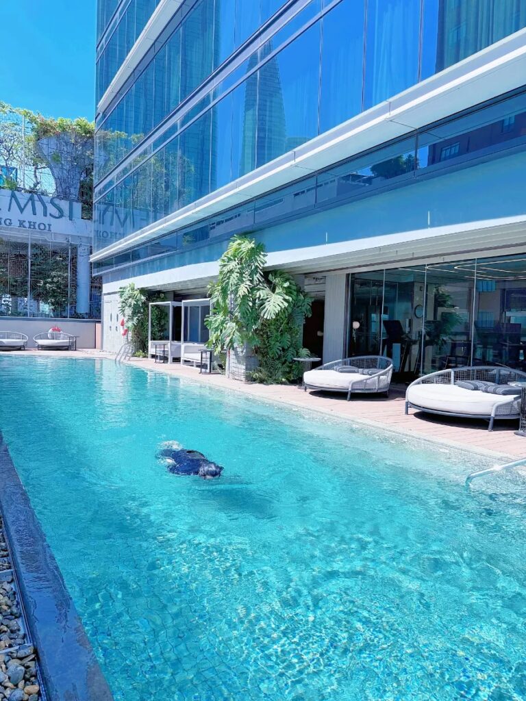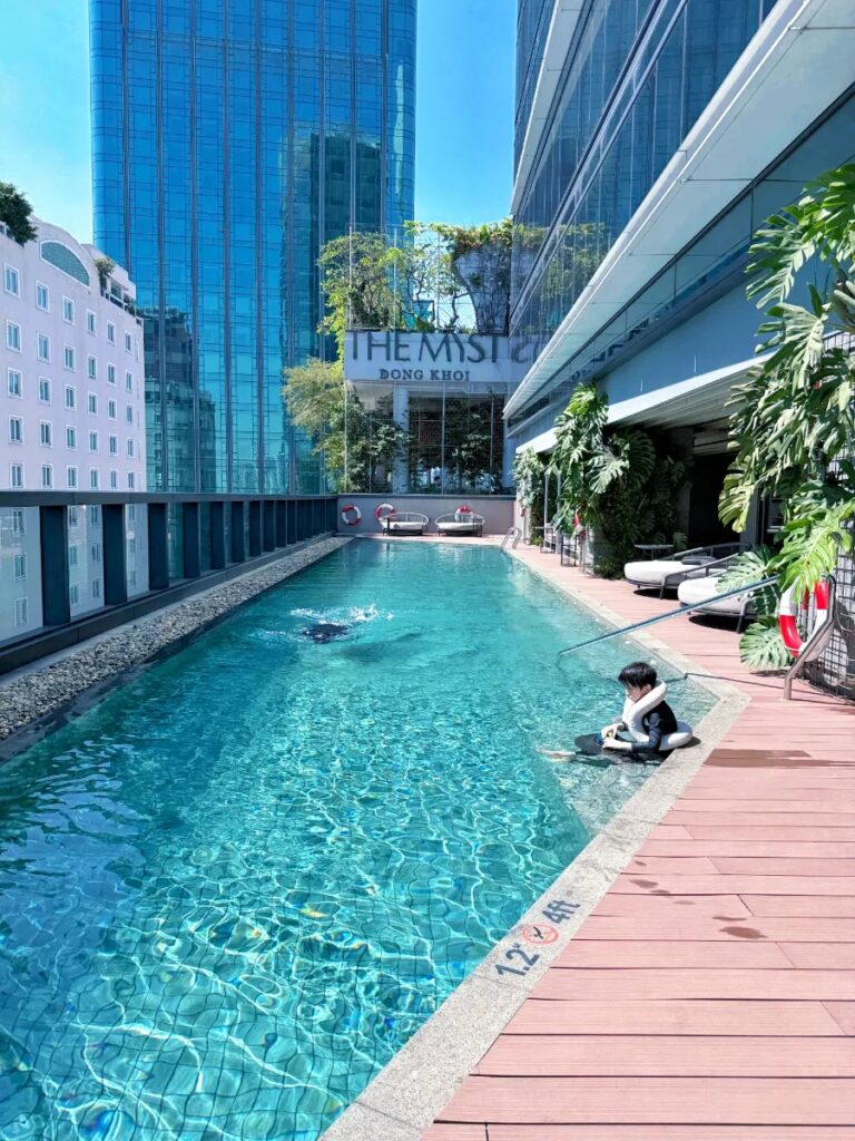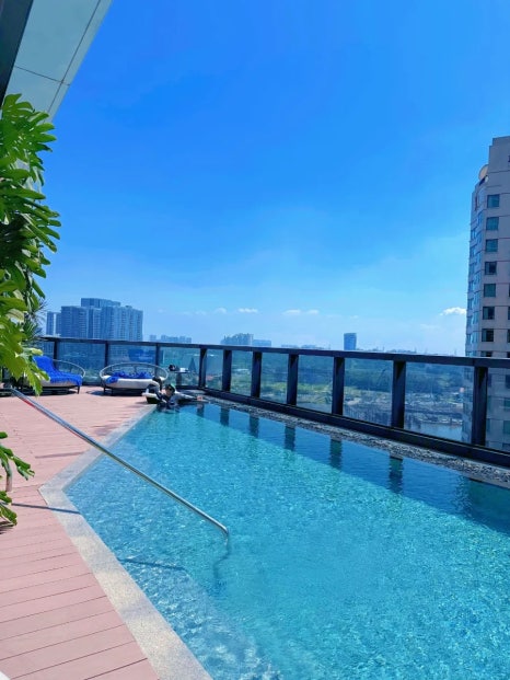 The pool is on the smaller side, but perfect for a relaxed family swim. The views of Ho Chi Minh City and the Saigon River from the water are genuinely stunning.
