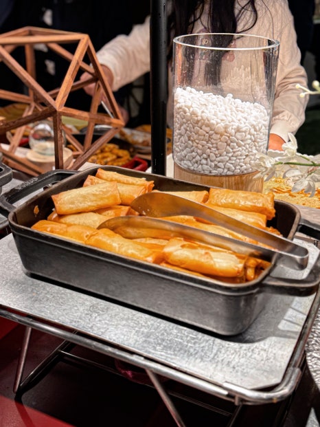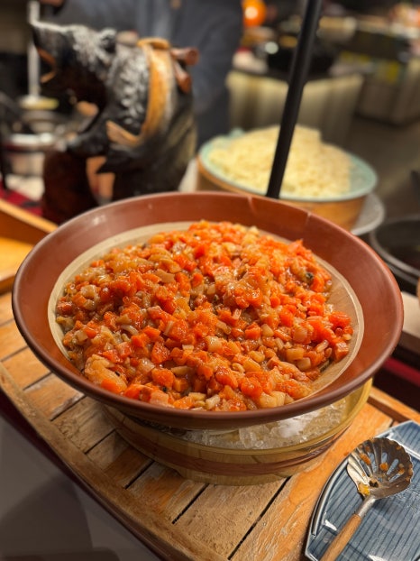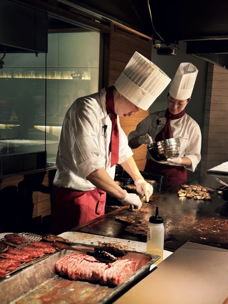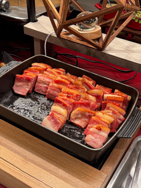 Dinner features a spectacular spread of beef, pork, chicken,