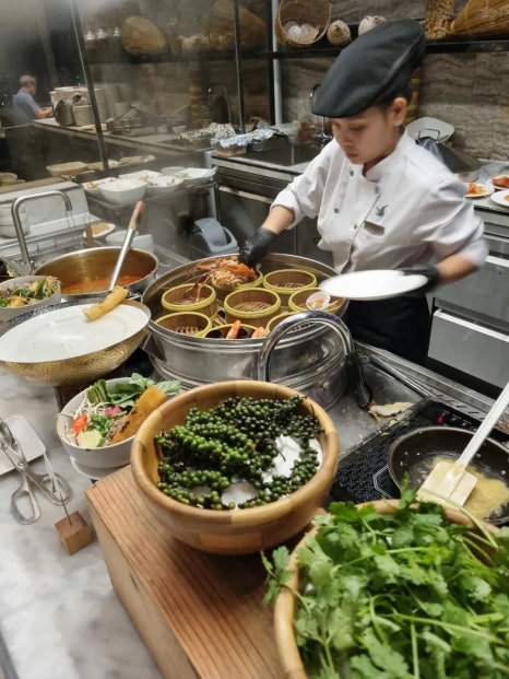 From freshly carved meat dishes to smoked salmon, artisan cheeses, and Vietnamese-style appetizers, the variety is impressive. There were plenty of kid-friendly finger foods too, so the whole family was more than satisfied.