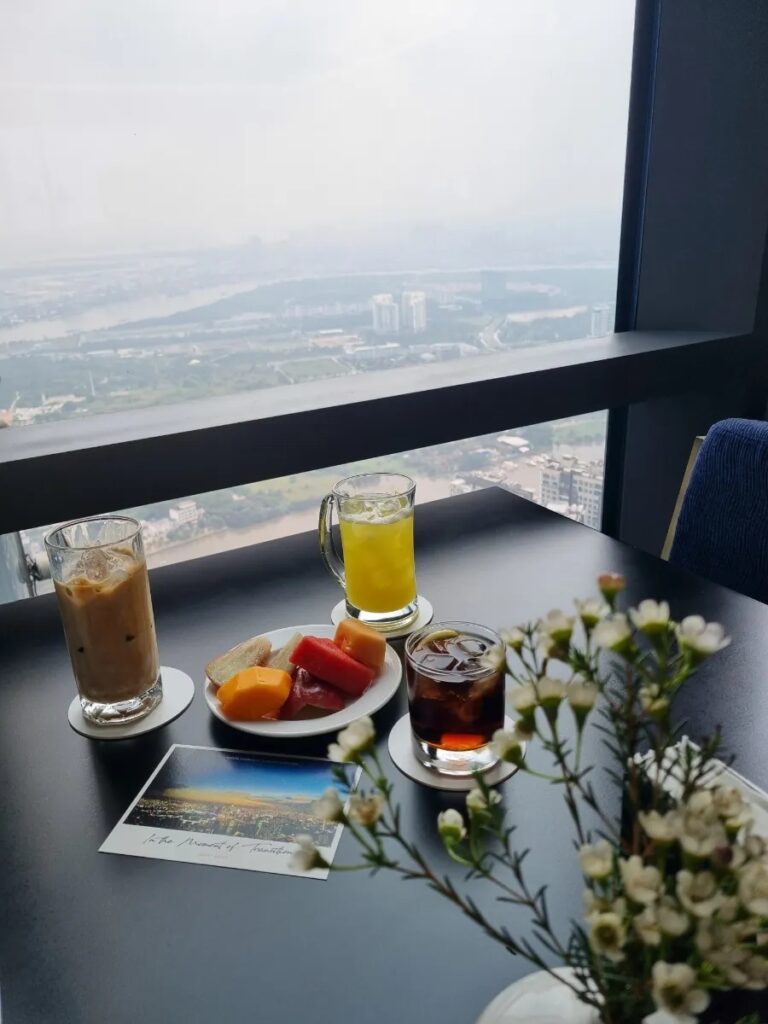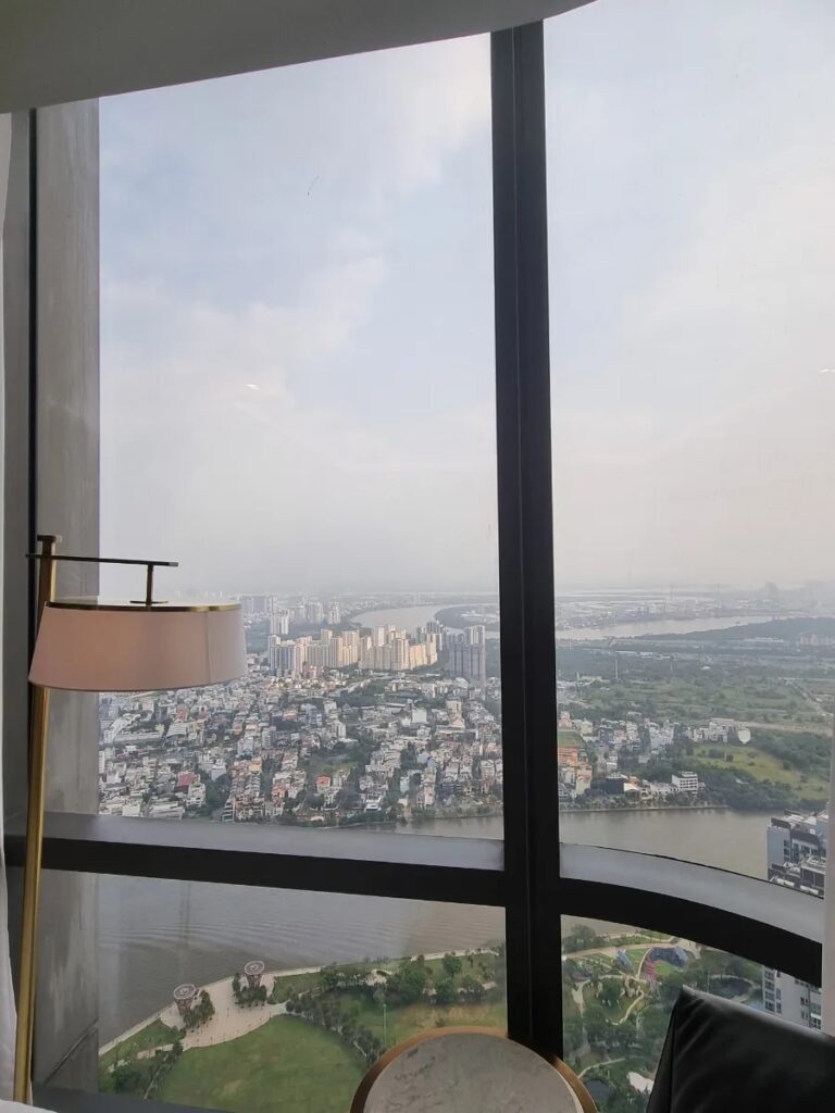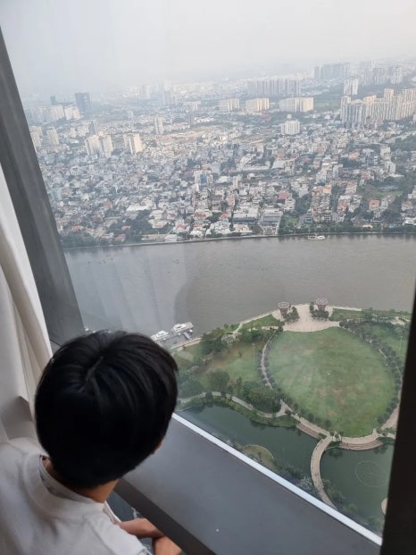 Sitting by the window with my child, watching the Saigon River curve through the city and the horizon stretch into the distance — it was the most peaceful moment of the entire trip.